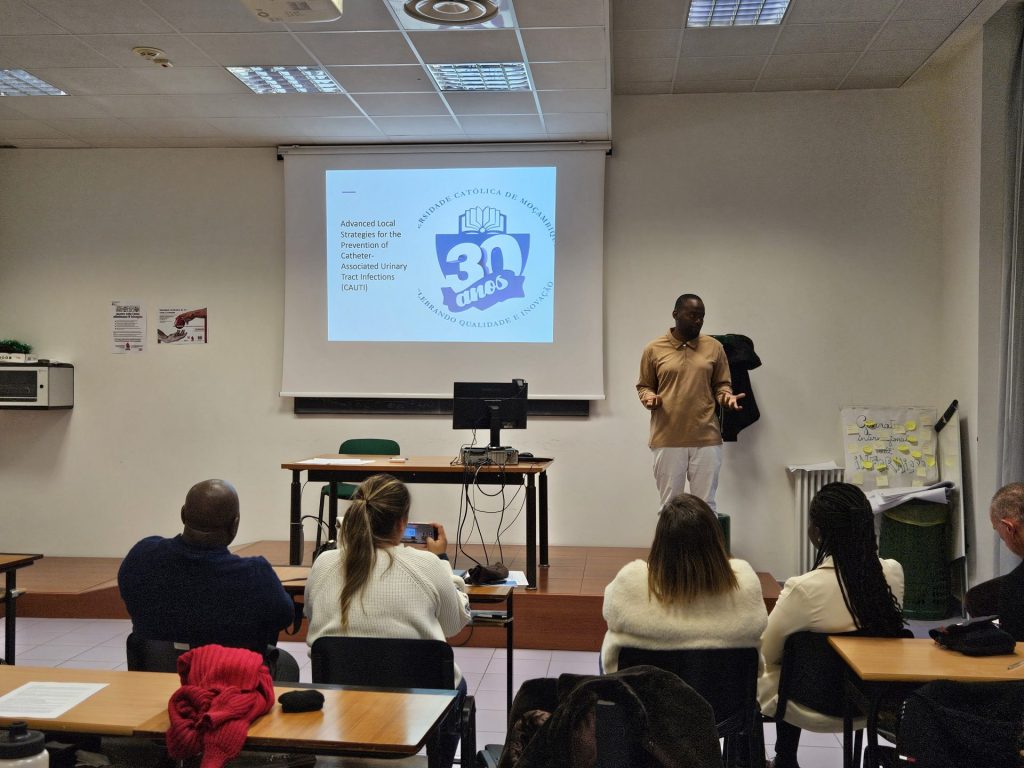 The delegation included Elmano Gomonda, coordinator of the Medicine and Surgery programme and director of Beira General Hospital, Kajal Chhaganlal, professor of paediatrics and director of education at the Faculty of Health Sciences, Sonia Raquel, internist with a PhD in tropical diseases and global health, and coordinator of the Clinical and Laboratory Analysis programme, Carlos Francisco Azevedo, professor in the Nursing degree programme, and Jordao Antonio Cardoso, coordinator of the Hospital Administration and Management programme.